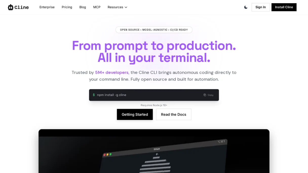 Cline CLI is an autonomous coding agent designed to operate directly within your terminal, bringing the power of AI-assisted development to the command line. Unlike traditional IDE extensions that are confined to a specific editor, Cline works across your entire file system, executing shell commands and automating complex development workflows. It is built for developers, DevOps engineers, and technical teams who want to streamline repetitive tasks, automate debugging, and accelerate project setup without leaving their terminal environment. The key benefits include deep system integration, the ability to perform multi-step reasoning tasks, and the flexibility to adapt to any tech stack or local environment.