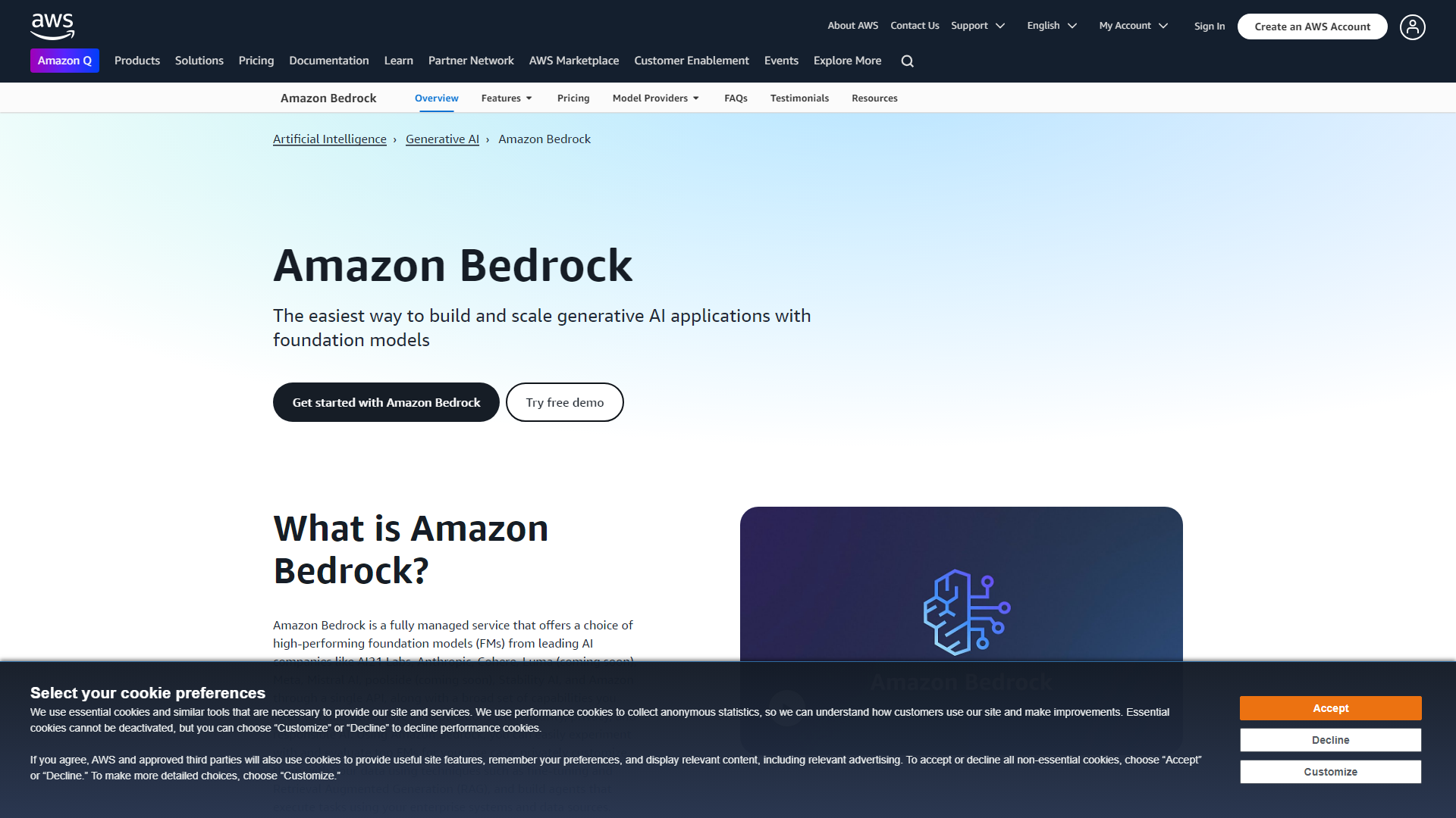 Ai assistants, ai scaling, and generative ai are revolutionizing how businesses operate. Amazon Bedrock, an AWS-managed service, empowers developers to seamlessly build and scale generative AI applications using powerful foundation models. By offering a curated selection of high-performing models from leading AI providers like AI21 Labs, Anthropic, and Stability AI, Bedrock simplifies the process of finding the perfect model for your specific needs. Users can easily fine-tune these models with their own data, unlocking personalized experiences and driving innovation. Moreover, Bedrock's serverless architecture eliminates infrastructure management, allowing developers to focus on building exceptional applications while ensuring security, privacy, and responsible AI practices.