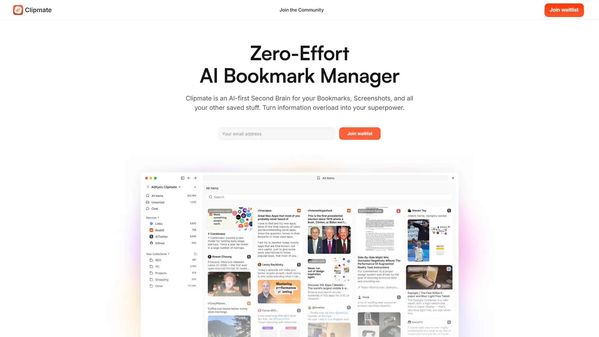 AI productivity tools are revolutionizing how we work, and Clipmate AI stands at the forefront. This zero-effort AI bookmark manager acts as your second brain, effortlessly organizing your digital clutter and empowering you to reclaim control of your information. With seamless features like automatic sync across platforms, powerful semantic search capabilities, and the ability to add notes to bookmarks, Clipmate AI streamlines your workflow. Its Chrome extension makes adding new links and files a breeze, while upcoming auto-categorization and chat bookmark functions further enhance its efficiency. Whether you're a digital hoarder, entrepreneur, designer, researcher, developer, or marketer, Clipmate AI offers a powerful solution to information overload and disorganization.