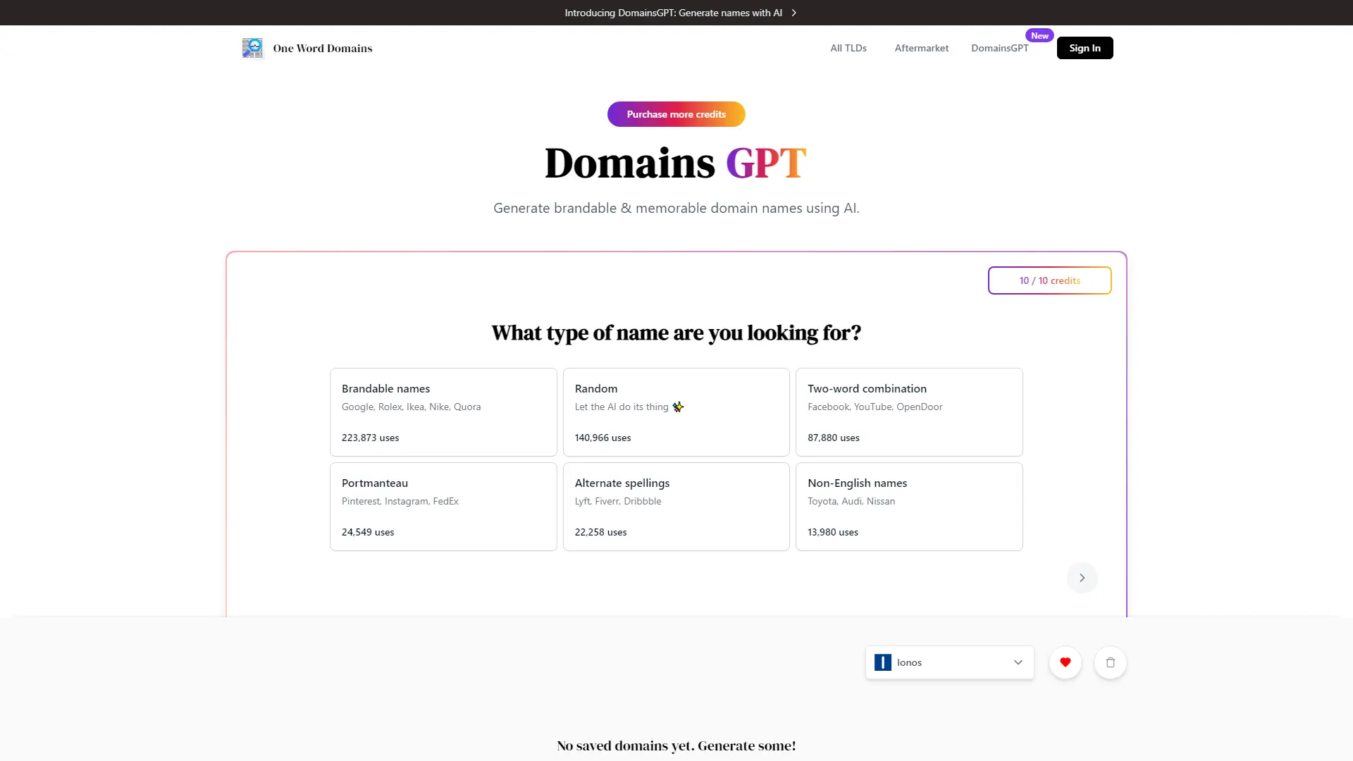 AI in business is revolutionizing how we approach everything from marketing to product development. DomainsGPT takes this a step further by leveraging the power of AI to help you find the perfect domain name for your brand. This innovative tool utilizes OpenAI, Vercel, and Edge Functions to generate unique and memorable names tailored to your specific needs. Whether you're looking for a catchy brandable name, a clever two-word combination, or something more unconventional like a portmanteau or non-English word, DomainsGPT has you covered. With access to over 92 top-level domains, including .com, .io, .co, .ai, and .app, you're sure to find the perfect fit for your online presence. Plus, its user-friendly interface makes finding your dream domain a breeze!