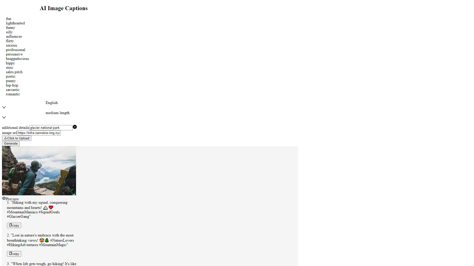AI art generators are revolutionizing how we create visual content, but sometimes that masterpiece needs the perfect caption to truly shine. Enter Felix Link Captions, your go-to tool for generating captivating and diverse captions tailored to any image theme. Whether you're looking for lighthearted humor, professional persuasiveness, or a touch of romance, Felix Link offers a wide range of styles, from flirty and poetic to serious and sarcastic. This AI-powered tool saves you time and effort, providing ready-to-use captions for your social media posts, blogs, or any visual content. Elevate your art with the power of compelling captions – discover Felix Link Captions today!