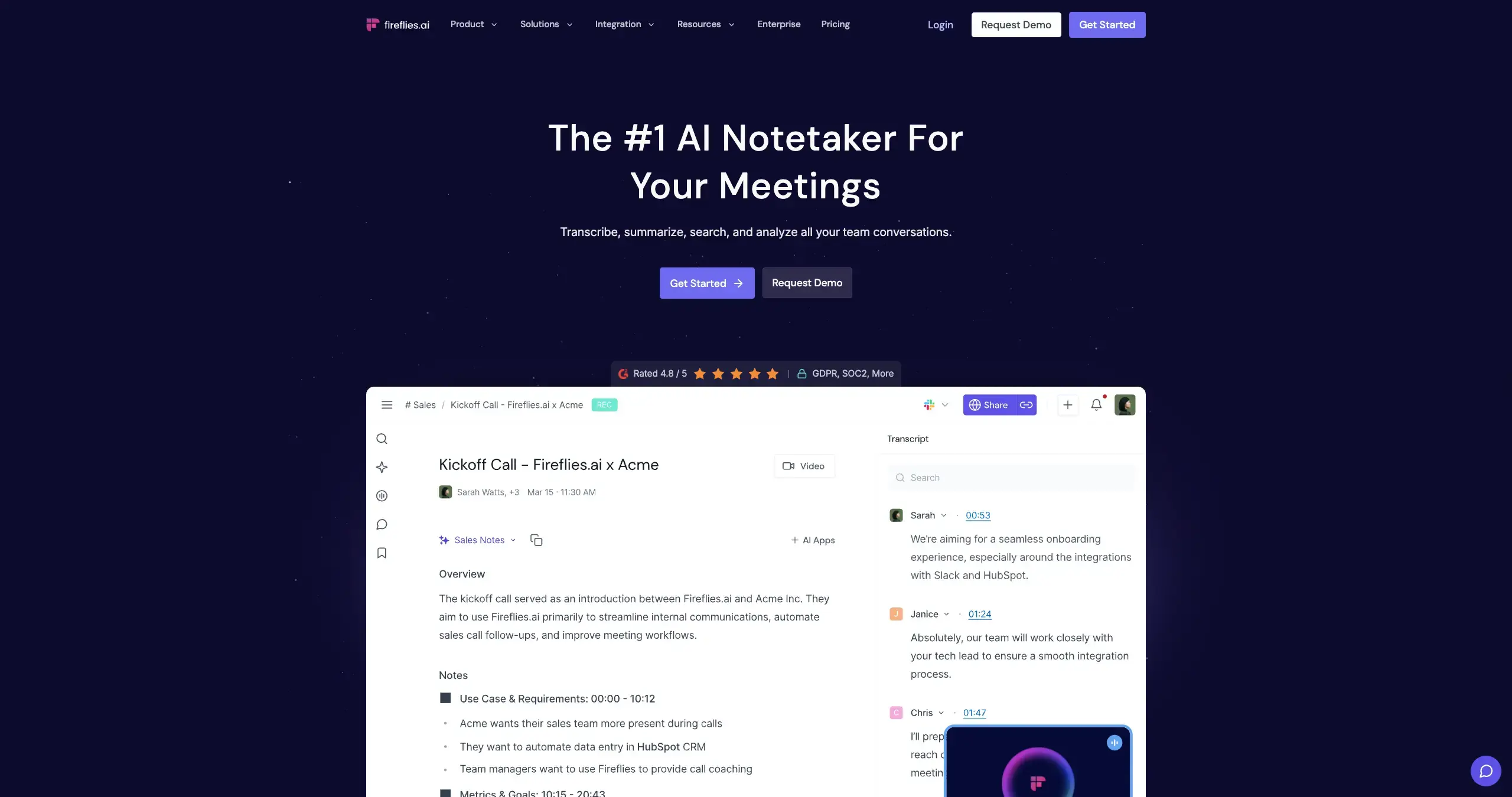 Automate meeting notes with Fireflies. Record, transcribe & search calls for instant action items.