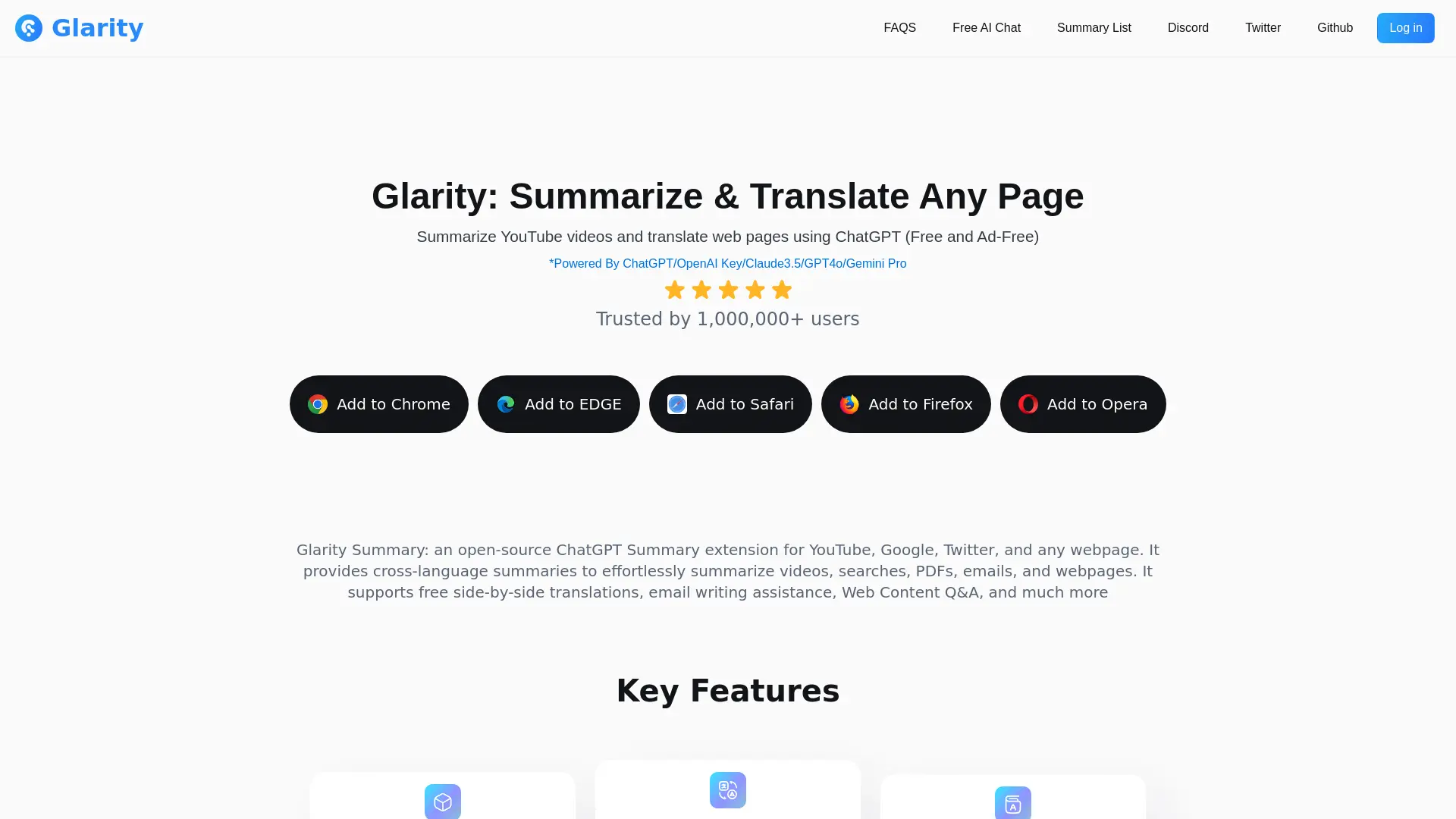 AI summarization is no longer a futuristic concept – it's here, and it's making our online lives easier. Introducing Glarity, an open-source AI tool powered by ChatGPT, designed to simplify your reading and writing experience across various platforms. Glarity seamlessly integrates as a Chrome extension, offering cross-language summaries for YouTube videos, Google searches, tweets, PDFs, and web pages. Its ability to generate human-like text, provide side-by-side translations, assist in email composition, and answer questions intelligently makes it an invaluable asset for navigating the vast expanse of online information. Trusted by thousands of users, Glarity empowers you with clarity and understanding across diverse online platforms.