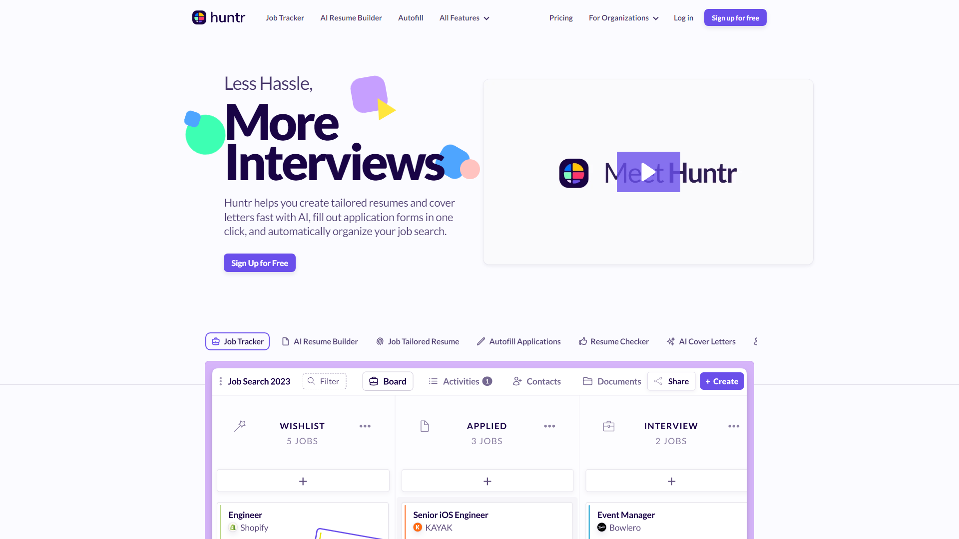 AI resume builder, AI chatbot, AI writing, templates, AI assistant, automation – these are all powerful tools that can revolutionize your job search. Huntr is an innovative job application tracker that leverages these technologies to help you stay organized and on top of every opportunity. Huntr meticulously tracks every detail about your job applications – from notes and dates to tasks, job descriptions, salaries, locations, and company data. This comprehensive tracking system frees up your time and mental energy, allowing you to focus on crafting compelling applications and acing interviews. With Huntr's intuitive interface and powerful automation features, you can streamline your job search process, increase your chances of success, and land your dream role with ease.