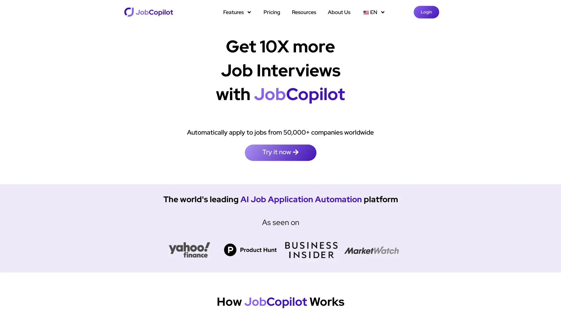 AI assistant JobCopilot revolutionizes your job search by automating the application process. This powerful AI writing tool helps you get more job interviews by automatically applying up to 1,500 relevant jobs each month from over 50,000 companies worldwide. JobCopilot saves you time and effort, allowing you to focus on refining your skills and preparing for interviews. By leveraging the power of automation and AI writing, JobCopilot increases your chances of landing your dream job.