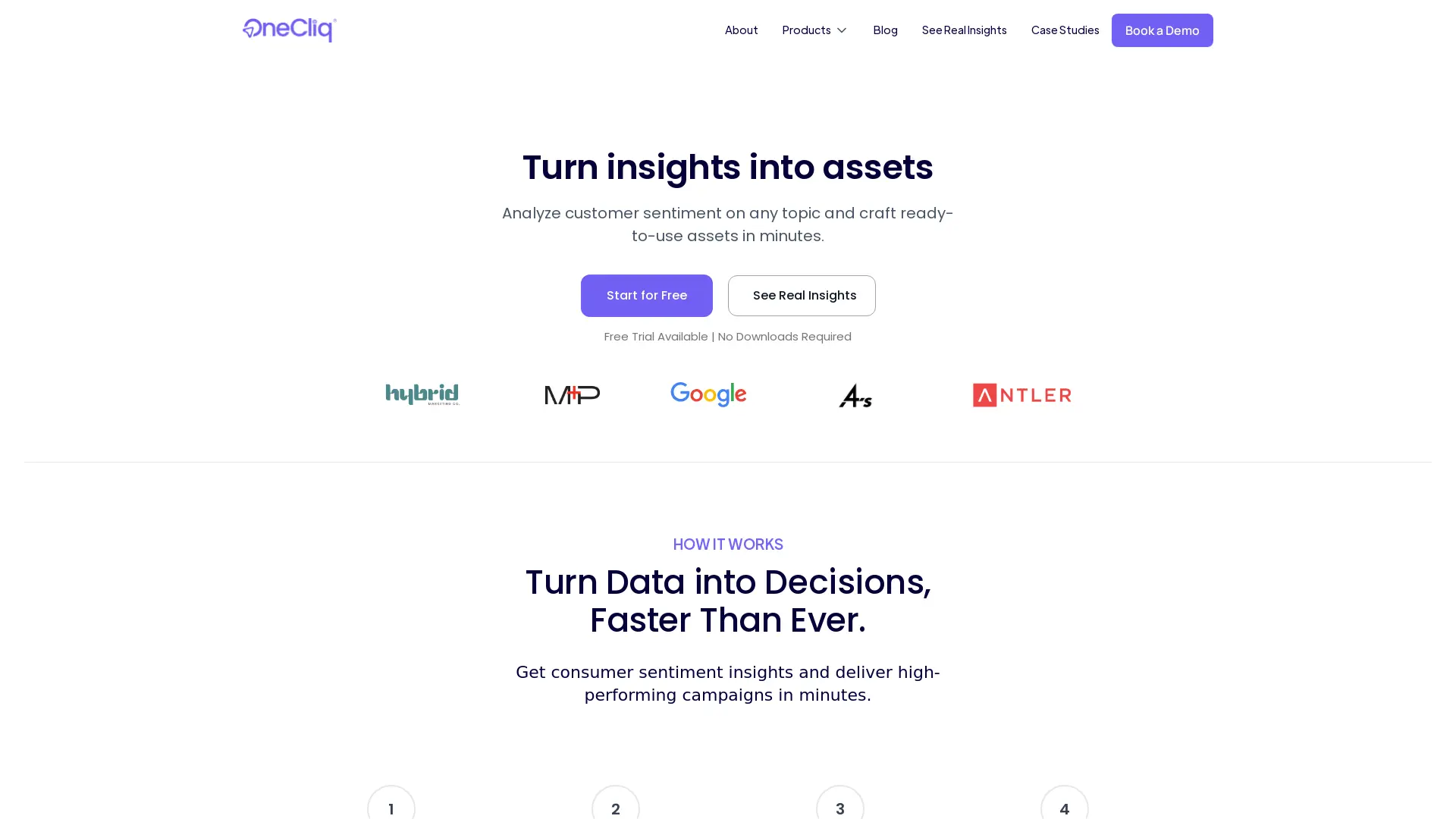 OneCliq offers a free trial with the option to upgrade to paid plans. Unfortunately, the specific pricing details for the paid plans are not available on this page. The website emphasizes that OneCliq provides a powerful system to analyze consumer sentiment and turn research into actionable marketing assets. They highlight features like data collection from various platforms, generation of both qualitative and quantitative insights, and creation of ready-to-use creative briefs for campaigns.Free Trial: Available Paid Plans: Pricing information not available on the provided page. Key Features: Consumer sentiment analysis Data collection from various platforms Qualitative and quantitative insights generation Creation of marketing assets (creative briefs, blogs, newsletters, social media content)
