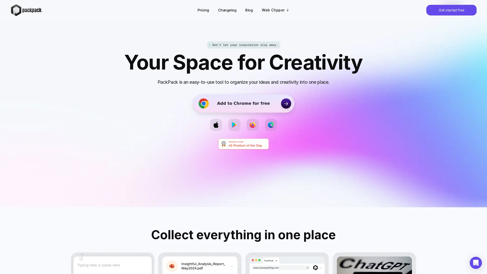 AI summarization, AI assistants, and AI for academic research are revolutionizing how we learn and work. Introducing PackPack, an innovative AI-powered bookmark manager designed to streamline your research process and enhance your productivity. With a simple click, save any web content – articles, videos, social media posts, even e-commerce product information – from diverse platforms. PackPack doesn't just store your findings; it uses AI to deliver intelligent insights. Generate concise summaries with our "TL;DR" feature, access instant answers through AI-powered Q&A, and effortlessly find saved content using our "Relevant Search" function, eliminating the need for precise keyword matching.
