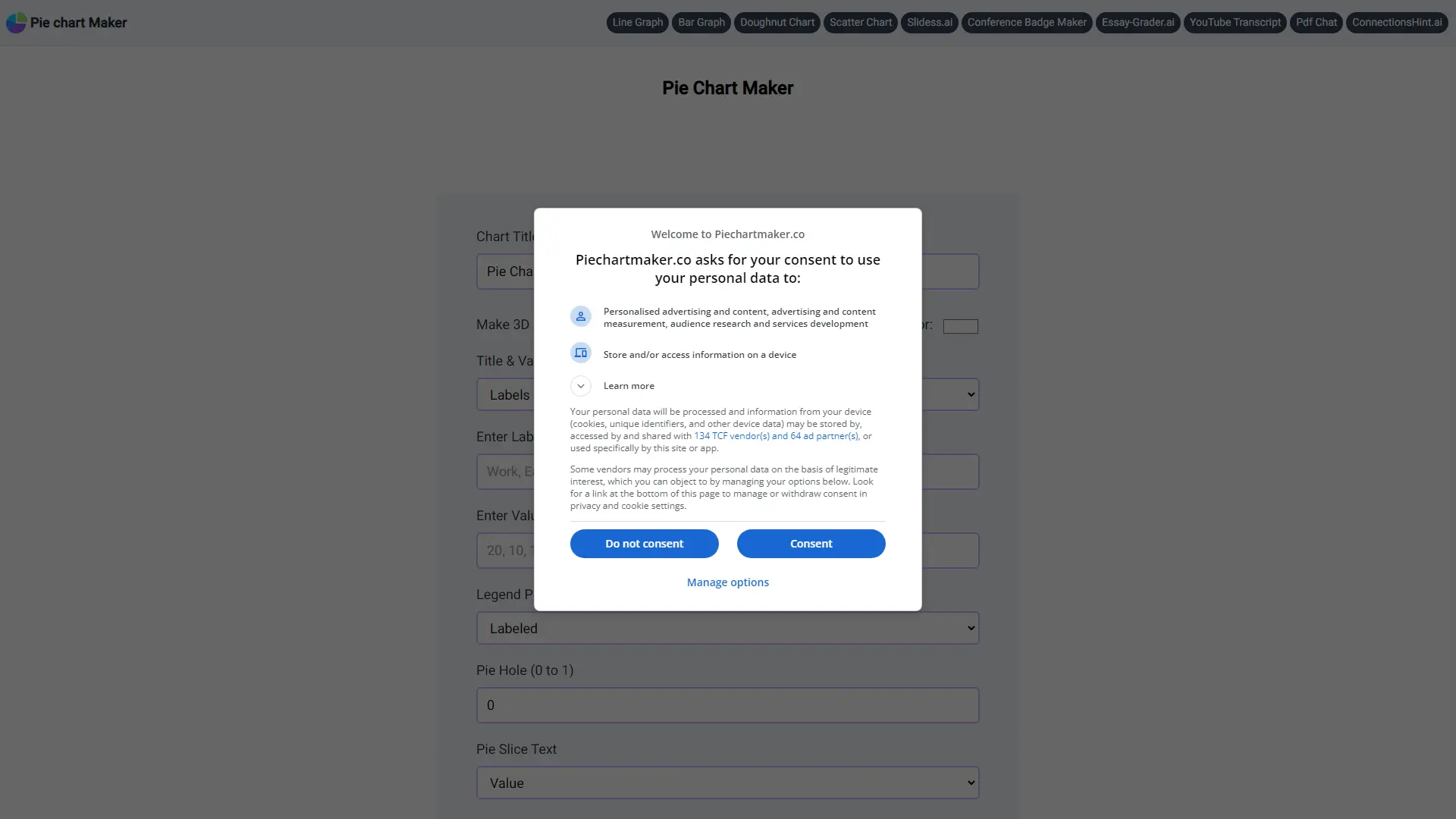 AI in data analysis is revolutionizing how we understand information, and visualizing that data clearly is crucial. Piechartmaker.Co makes this process effortless with a user-friendly online tool that generates visually appealing pie charts in seconds. Simply input your data points and customize the chart to your liking. Choose from various background colors, create 3D effects for added depth, and adjust legend positions for optimal clarity. Whether you're showcasing work breakdowns, analyzing study habits, or presenting any other dataset, Piechartmaker.Co simplifies the process and allows you to download your charts in JPG, PNG, or SVG formats for easy sharing and use.