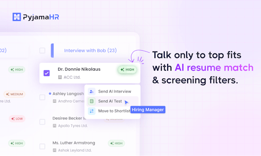 Large language models are transforming various industries, and recruiting is no exception. Enter PyjamaHR, a next-generation AI applicant tracking system (ATS) designed to streamline your hiring process from start to finish. PyjamaHR leverages the power of advanced LLMs to provide intelligent candidate pre-screening and assessments, significantly enhancing the efficiency and accuracy of your talent pool. This comprehensive platform offers a unified view of your hiring pipeline, allowing you to effortlessly track candidates and manage every stage of the recruitment journey, all within a single intuitive interface. From sourcing to interviewing thousands of applicants, PyjamaHR simplifies each step with its powerful RecruiterAI, saving you valuable time and resources.