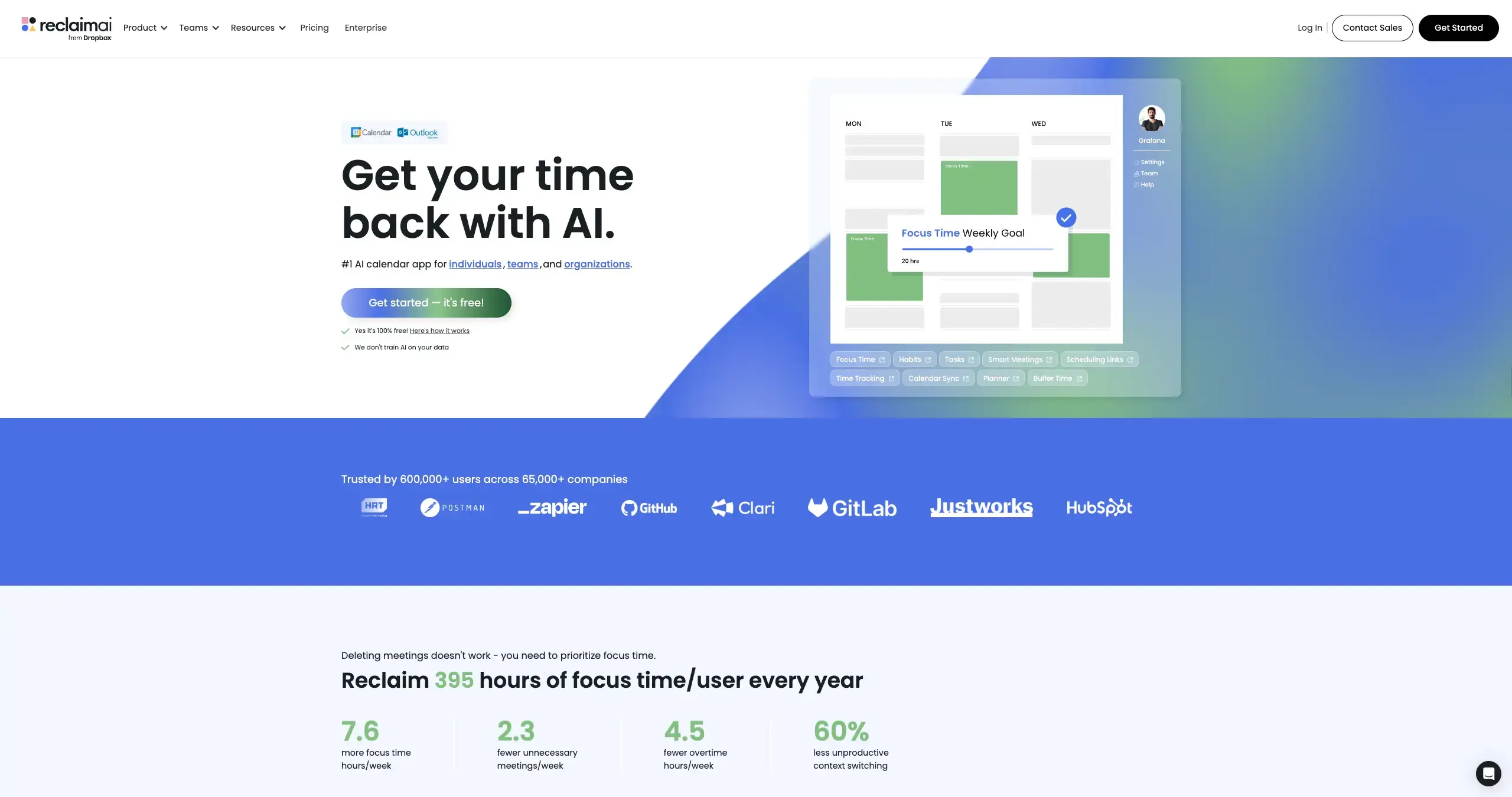 AI assistants are changing the way we work, and Reclaim is leading the charge in AI time management. This intelligent calendar isn't just about scheduling appointments; it's about proactively carving out time for the important tasks that often get pushed aside. Meet Reclaim: the AI calendar that can save you up to 40% of your workweek by automating your schedule and optimizing your day. By analyzing your workload, commitments, and preferences, Reclaim suggests dedicated blocks for deep work, creative thinking, and even breaks, ensuring you focus on what truly matters. Reclaim empowers you to reclaim control of your time and achieve greater productivity, leaving you with more energy and focus for the things that bring you joy.