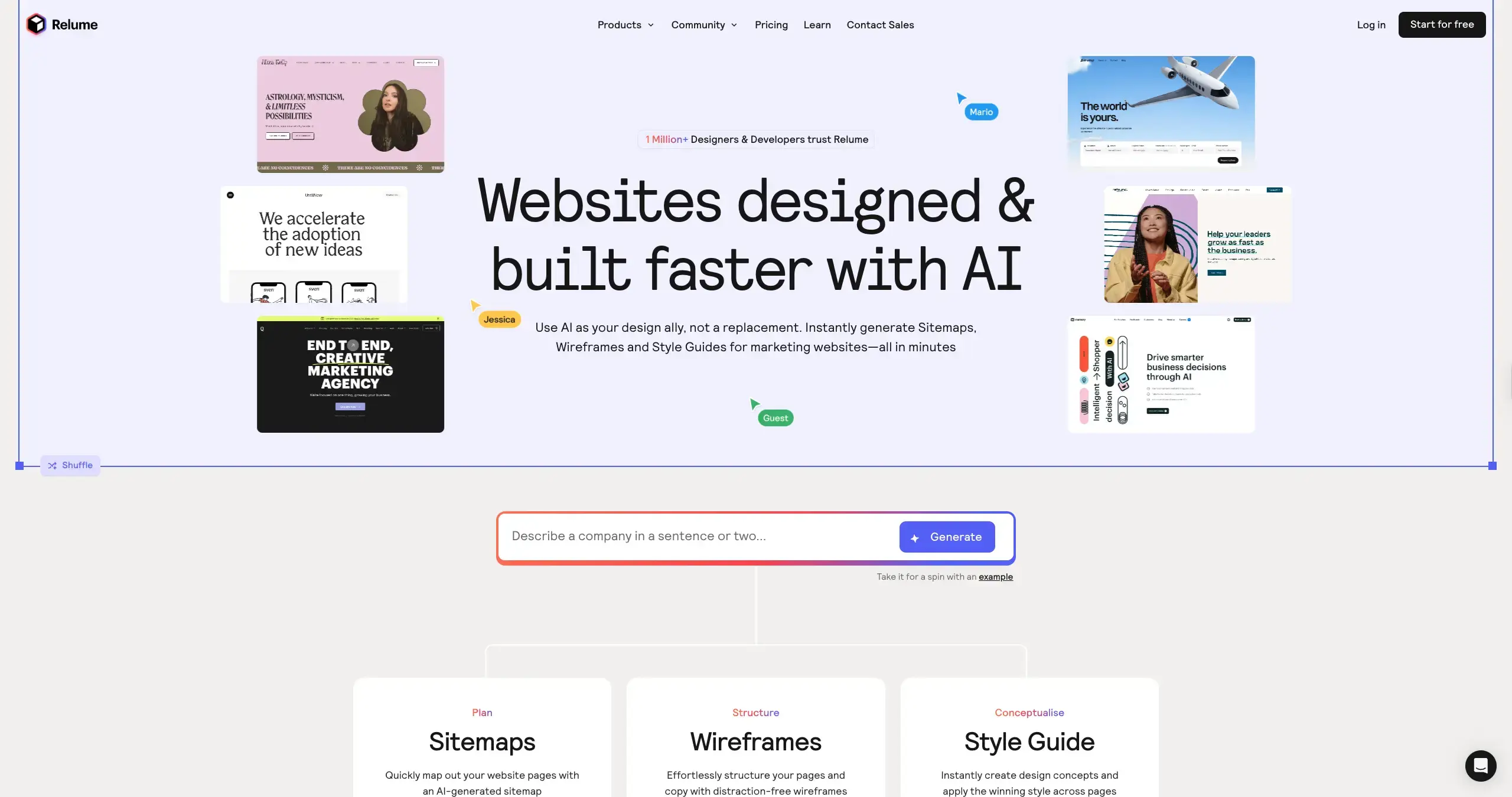 No-code AI is revolutionizing web design, and Relume leads the charge. This powerful AI website builder empowers designers to create stunning websites effortlessly in minutes. With a vast library of over 1,000 client-first components for both Webflow and Figma, Relume streamlines the entire design process. Its intuitive Chrome extension boosts productivity, while features like sitemap generation, wireframe creation, and AI copywriting eliminate tedious tasks. Relume fosters seamless collaboration with clients and teams, ensuring everyone is aligned throughout the project lifecycle. From streamlined workflows to breathtaking designs, Relume's no-code AI platform unlocks new possibilities for web design excellence.