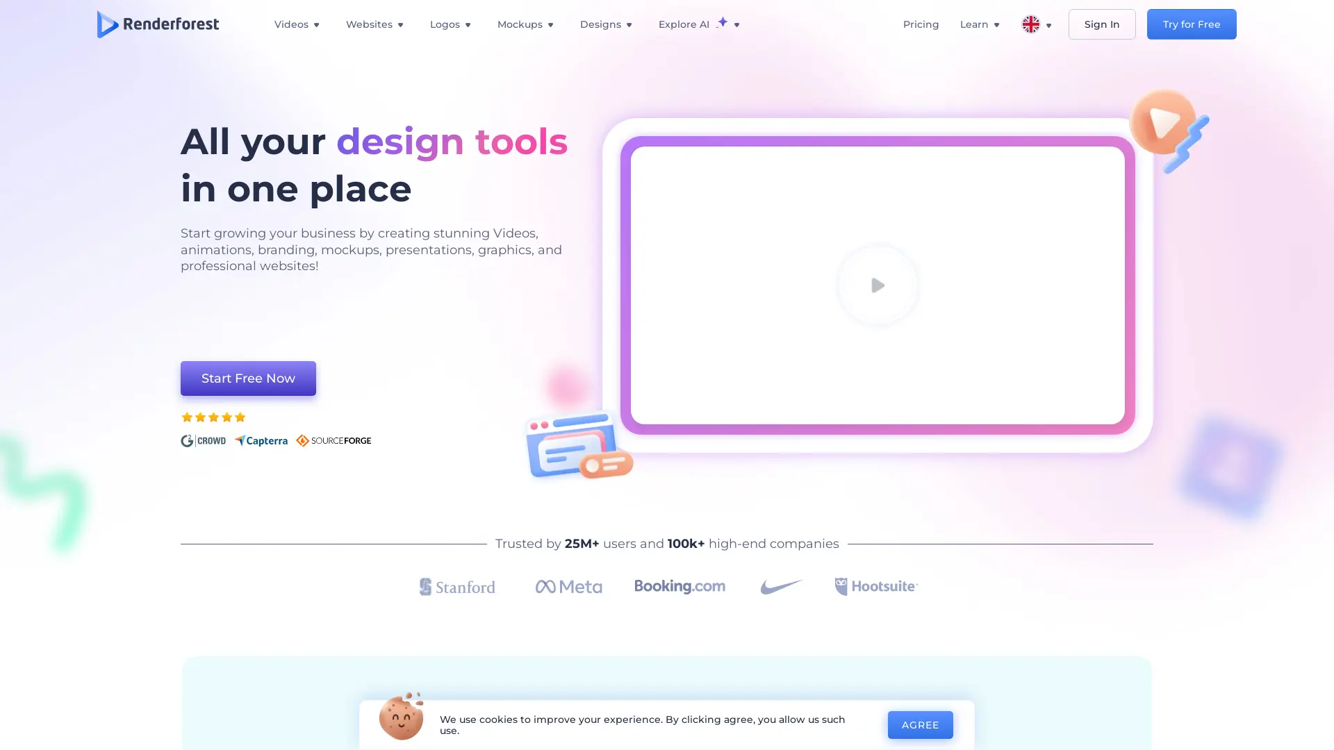 AI design is revolutionizing the way we create, and Renderforest leads the charge. This powerful platform empowers you to start growing your business by crafting stunning Videos, animations, branding assets, mockups, presentations, graphics, and professional websites! With Renderforest's intuitive interface and intelligent AI tools, you can generate high-quality content without needing design experience. Save time and resources while producing eye-catching visuals that captivate your audience. From logo generators to website builders, Renderforest provides the complete toolkit to bring your creative vision to life.