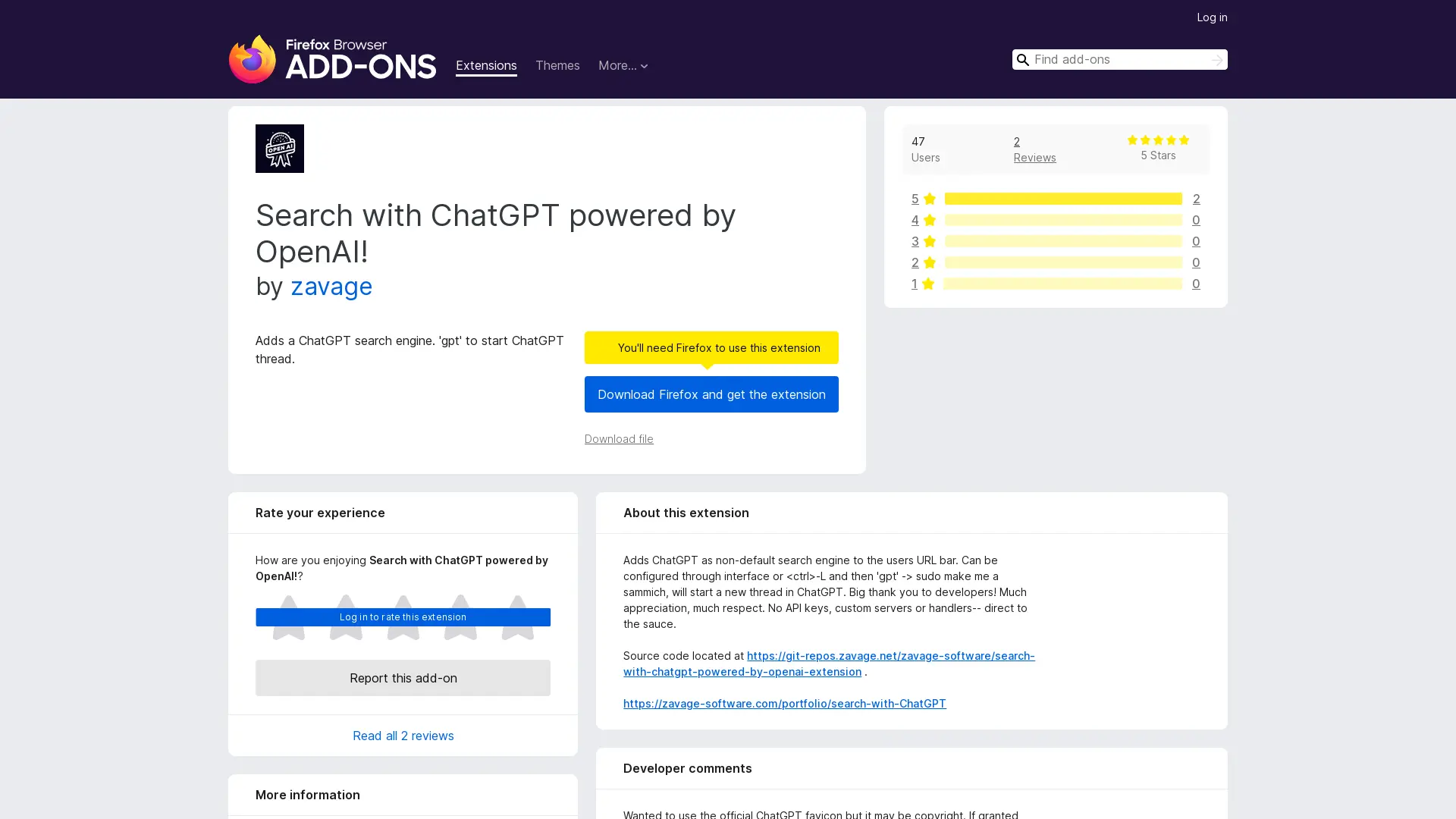 Ai search engine, ChatGPT powered Search with ChatGPT is a revolutionary browser extension that merges the power of generative AI with traditional search. This innovative tool allows you to directly interact with ChatGPT within your URL bar, transforming your online experience. Simply type gpt into your address bar followed by your query, and a new thread will open in ChatGPT, delivering insightful responses and creative content generation on demand. No need for complex API integrations or custom servers – it's a direct connection to the power of OpenAI's large language models. Search with ChatGPT empowers you to explore information in a more dynamic and interactive way, unlocking new possibilities for research, writing, and creative brainstorming.