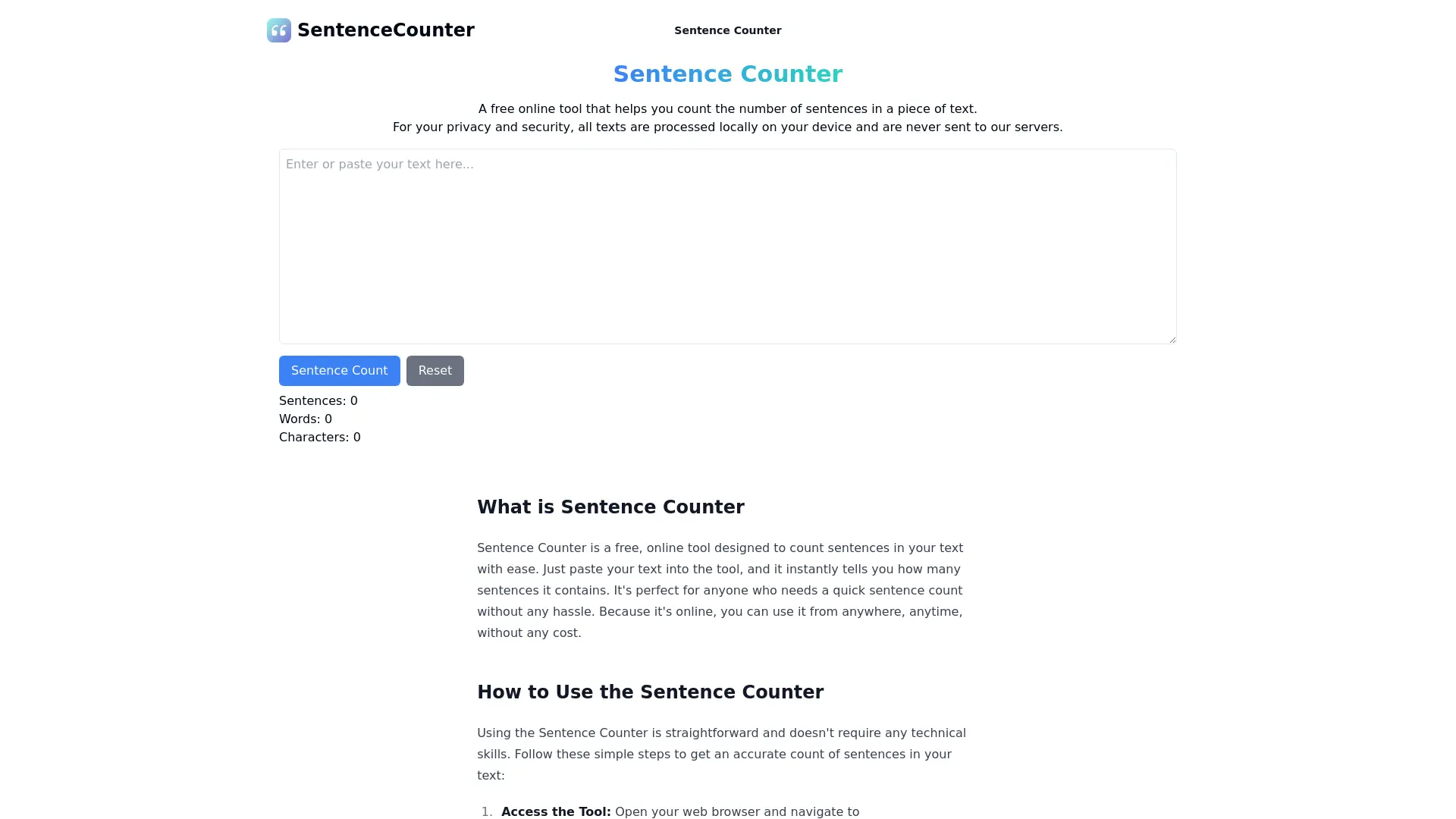 AI and education, ai productivity tools, and ai writing are revolutionizing how we learn and create. But sometimes, even with these powerful resources, understanding the structure of your writing can be challenging. Enter SentenceCounter, a free online tool designed to accurately count the number of sentences in any block of text. Accessible from any device with internet connectivity, SentenceCounter boasts a user-friendly interface that requires no technical expertise. Simply paste your text into the designated area and click "Count Sentences" for an instant tally. This privacy-focused tool processes all text locally, ensuring your data remains secure. SentenceCounter empowers writers to assess their work, refine readability and clarity, and gain valuable insights into text structure – making it a powerful asset for students, educators, and anyone looking to enhance their writing skills.