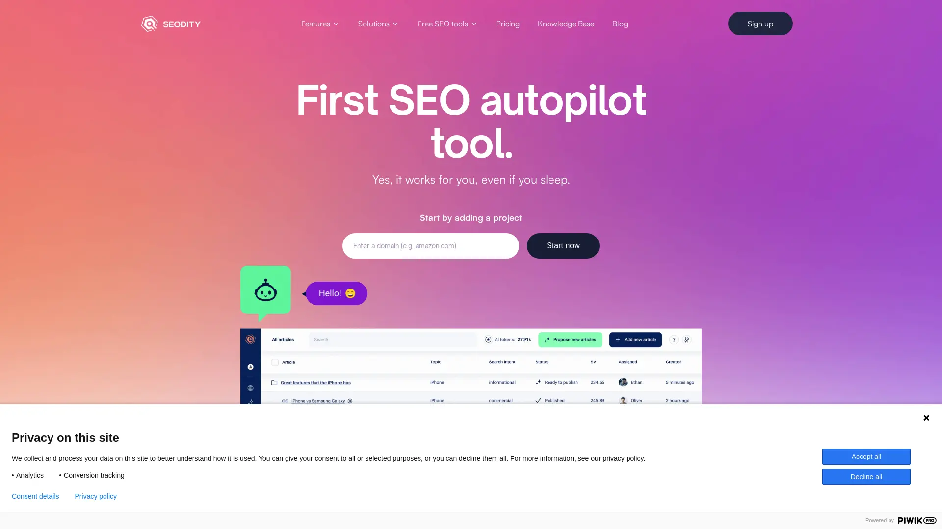 AI content generator tools are transforming the way businesses approach SEO, and Seodity stands at the forefront of this revolution. This comprehensive platform offers a suite of powerful features designed to streamline your SEO efforts and elevate your online presence. Seodity combines cutting-edge AI writing capabilities with intuitive website building tools, allowing you to create high-quality content effortlessly. Its smart automation features handle repetitive tasks, freeing up your time for strategic initiatives. With Seodity, you can leverage the power of AI to improve domain analysis, collaborate seamlessly with your team, and ultimately achieve greater SEO success.