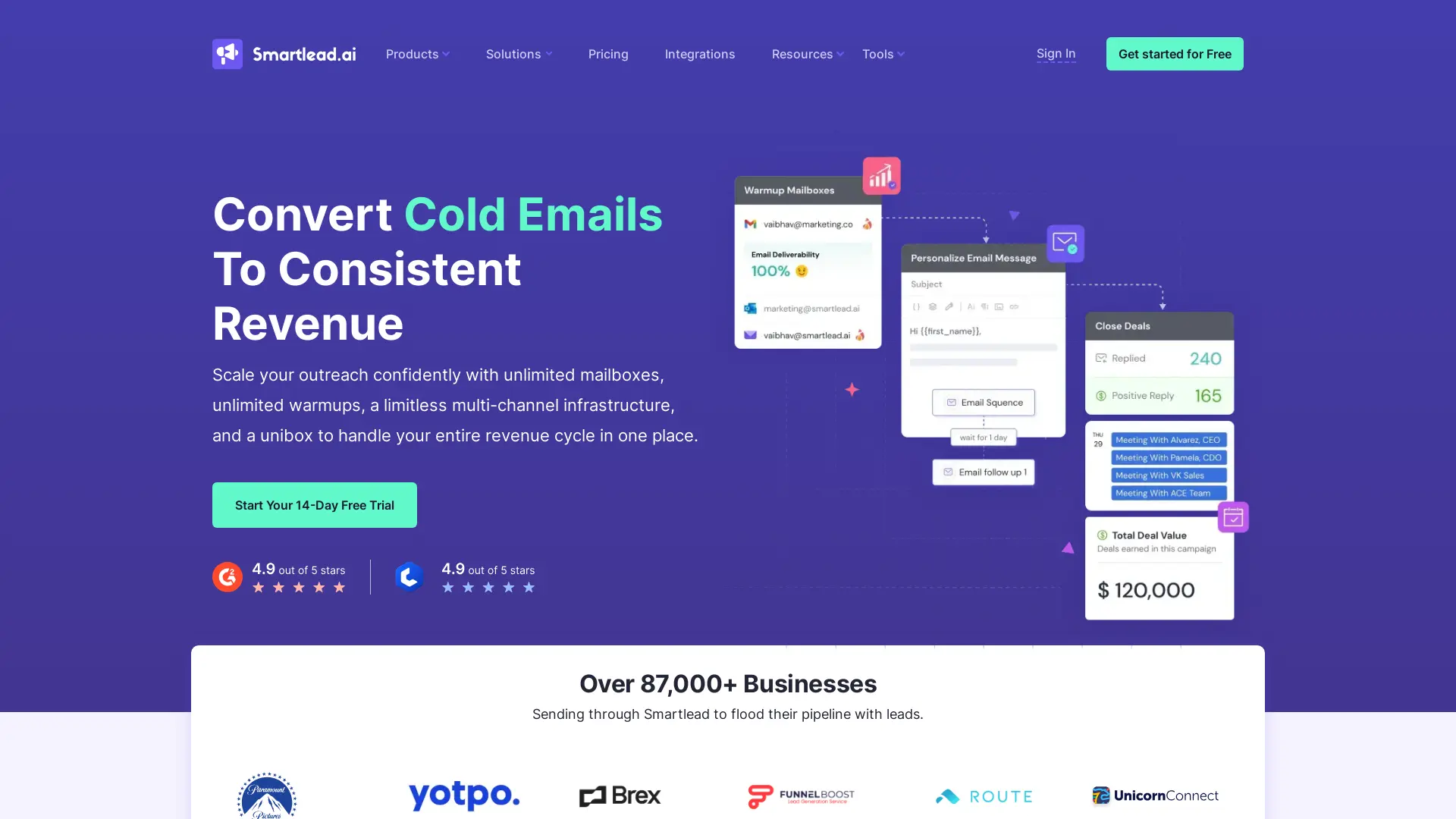 AI automation is transforming the way businesses connect with potential customers. Smartlead, a cutting-edge cold email outreach tool, harnesses the power of AI to streamline and personalize your lead generation efforts. By offering unlimited mailboxes, automated email warm-ups, and customizable white labeling, Smartlead simplifies the management of your entire deal flow in one centralized platform. Its multi-channel infrastructure enables you to reach prospects through email, SMS, Twitter, and WhatsApp, maximizing your chances of booking meetings and closing deals. Smartlead's AI capabilities ensure high deliverability rates by maintaining sender reputation and avoiding spam filters. Whether you're a lead gen agency, marketing agency, sales leader, or recruiter, Smartlead empowers you to scale your outreach confidently with its innovative features.