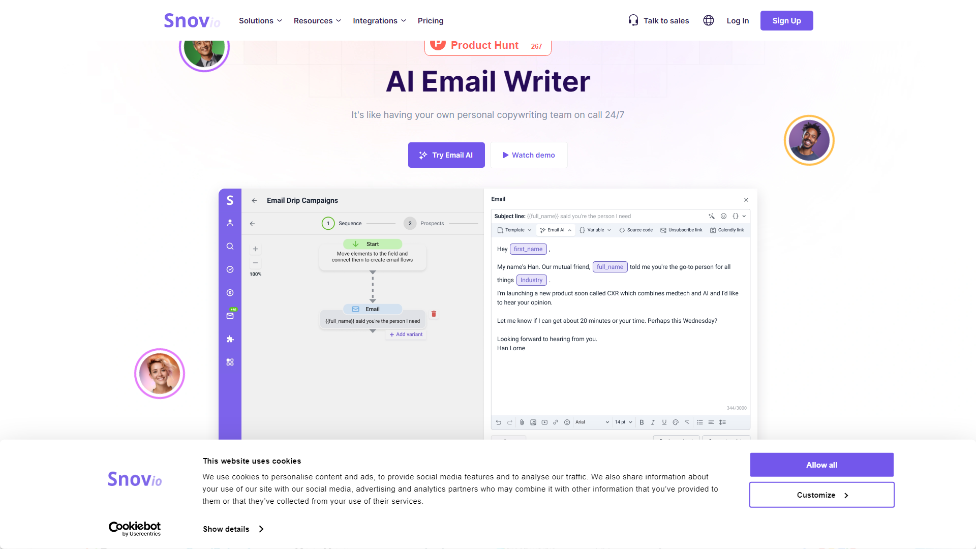 AI email assistants are revolutionizing how businesses communicate, and Snov.io's AI Email Writer is at the forefront of this transformation. This powerful tool leverages cutting-edge AI technology to help you craft engaging, personalized emails that drive results. Whether you need to write sales pitches, follow-up emails, or nurture leads through drip campaigns, the AI Email Writer generates compelling copy tailored to your specific needs. By automating the email writing process, Snov.io frees up your time for more strategic tasks, while also boosting your response rates and conversions.