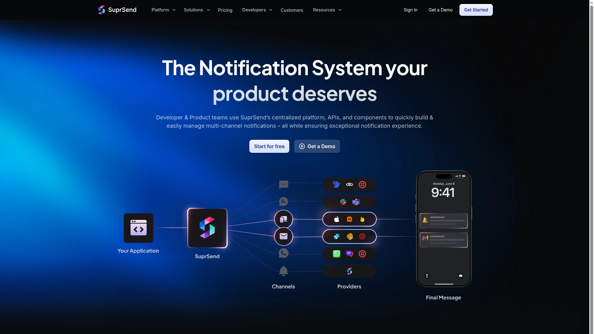 API AI, automation, templates, and AI website builders are all tools that can streamline your digital experience, but what about efficient product notification systems? Introducing SuprSend, a powerful notification infrastructure designed to build and manage product notifications across all channels. With the SuprSend API and intuitive dashboard, developers and product owners can rapidly ship cross-channel notifications, iterate on them with ease, and scale their strategies effortlessly. SuprSend's user-friendly interface and customizable templates allow for personalized messaging, boosting customer engagement and satisfaction. Whether you need to send order updates, promotional emails, or critical alerts, SuprSend empowers you to connect with your audience in a timely and impactful way.