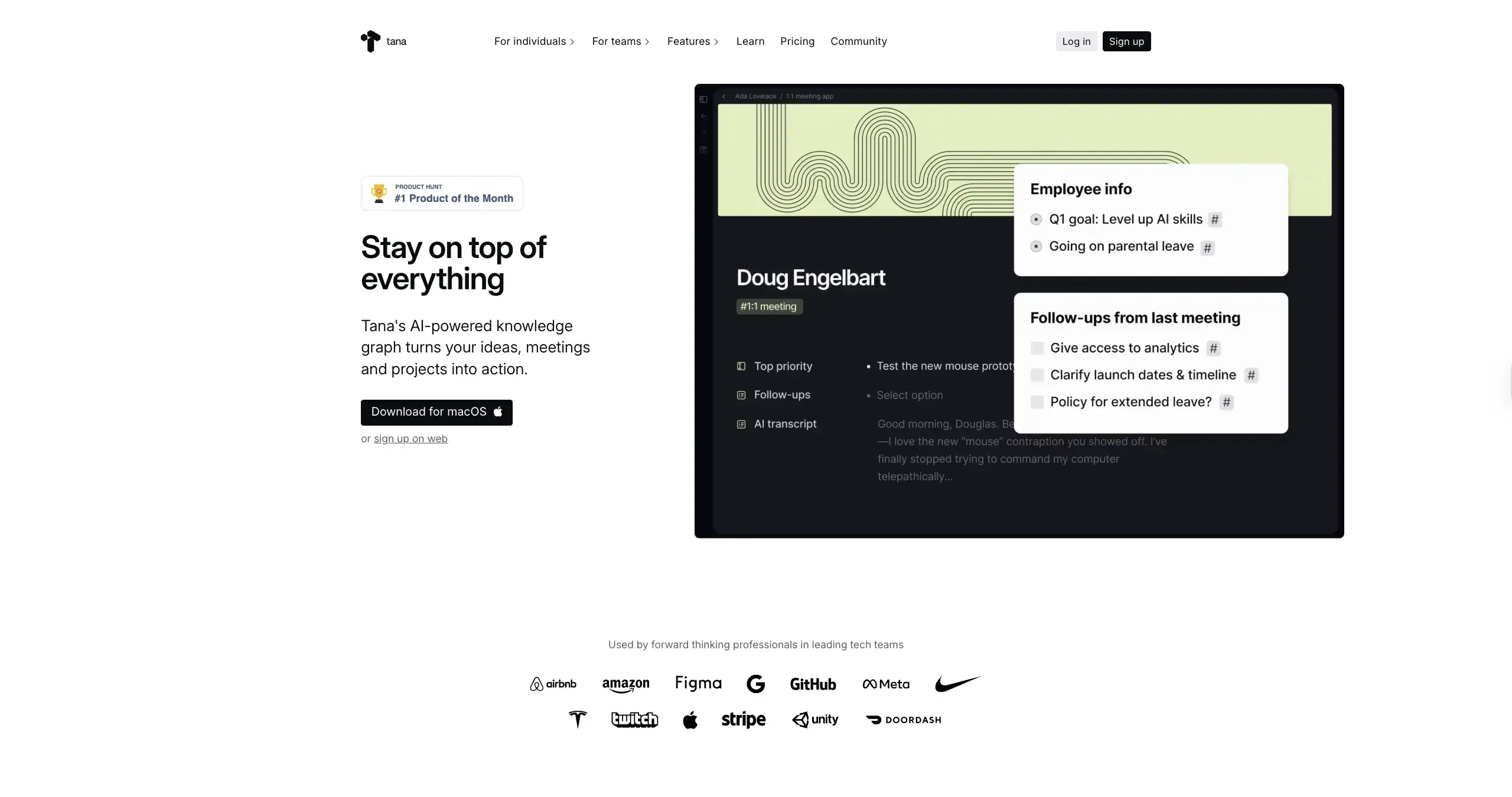 Feeling overwhelmed by a constant deluge of ideas, meetings, and tasks? In today’s fast-paced world, boosting your productivity is more crucial than ever, and that’s where ai productivity tools like Tana come in. This innovative workspace isn't just another note-taking app; it’s a dynamic, AI-powered knowledge graph designed to transform how you capture and utilize information. Tana helps tech startups – and anyone looking to streamline their workflow – connect ideas, projects, and feedback in real-time, leveraging the power of ai knowledge representation and automation to unlock a potential productivity increase of up to 10x.
