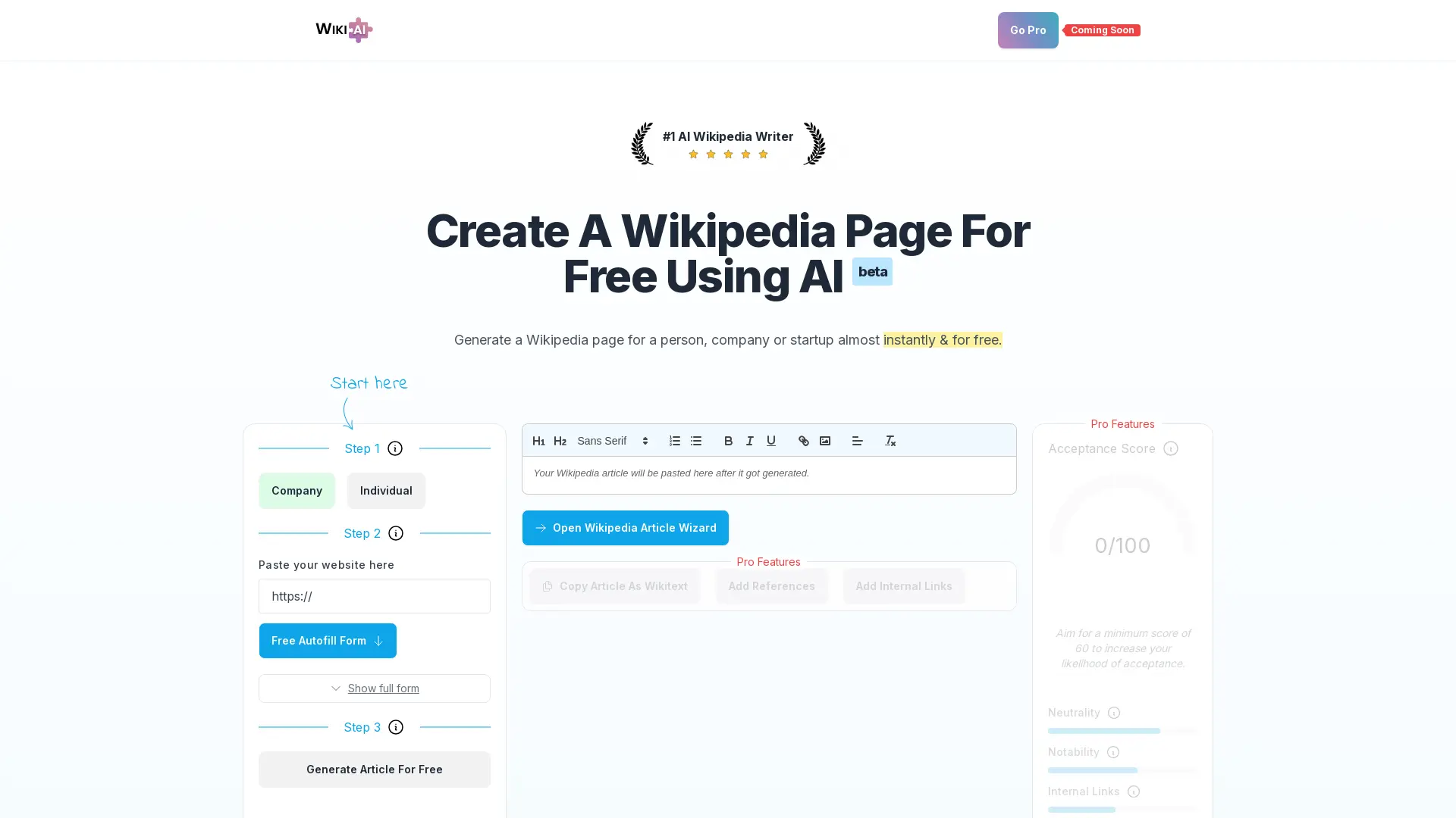 Artificial intelligence is rapidly changing how we create content, and Wikipedia Article AI exemplifies this revolution. This powerful tool empowers individuals, companies, and startups to effortlessly generate high-quality Wikipedia articles in minutes. By following a simple three-step process – inputting information, letting the AI generate the content, and copying the final draft – users can bypass the complexities of traditional article writing. Wikipedia Article AI leverages advanced AI trained on existing Wikipedia data, ensuring factual accuracy and adherence to platform guidelines. Its features like autofilling forms, adding references, and neutrality/notability scoring significantly increase the chances of submission acceptance. This AI-driven solution offers a cost-effective and time-saving alternative for anyone looking to establish a compelling online presence on Wikipedia.